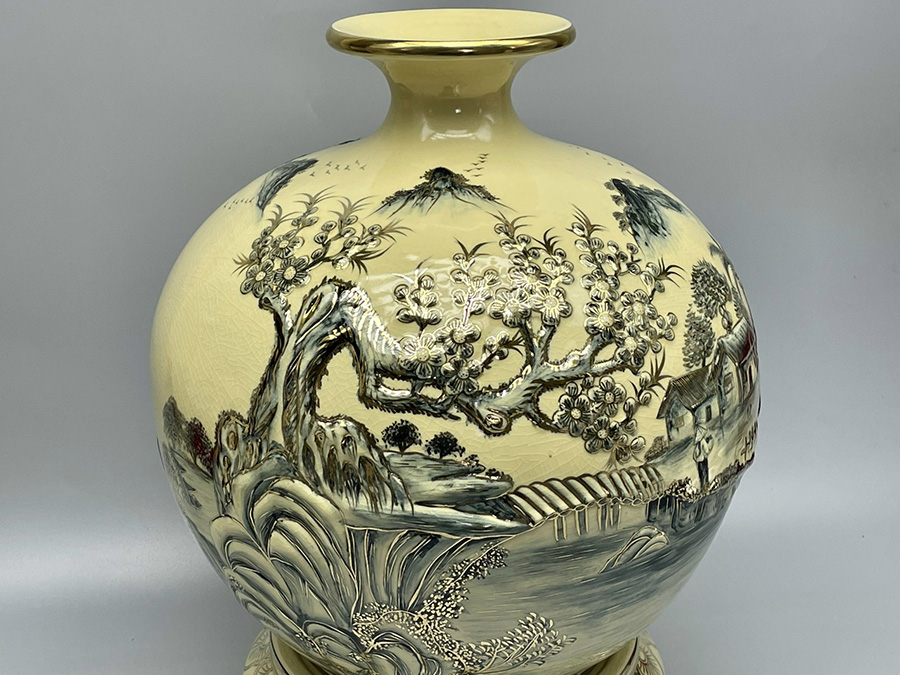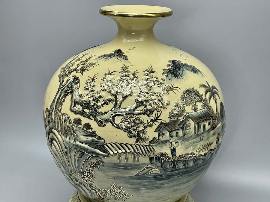 - Chất liệu : Gốm men rạn vẽ vàng kim