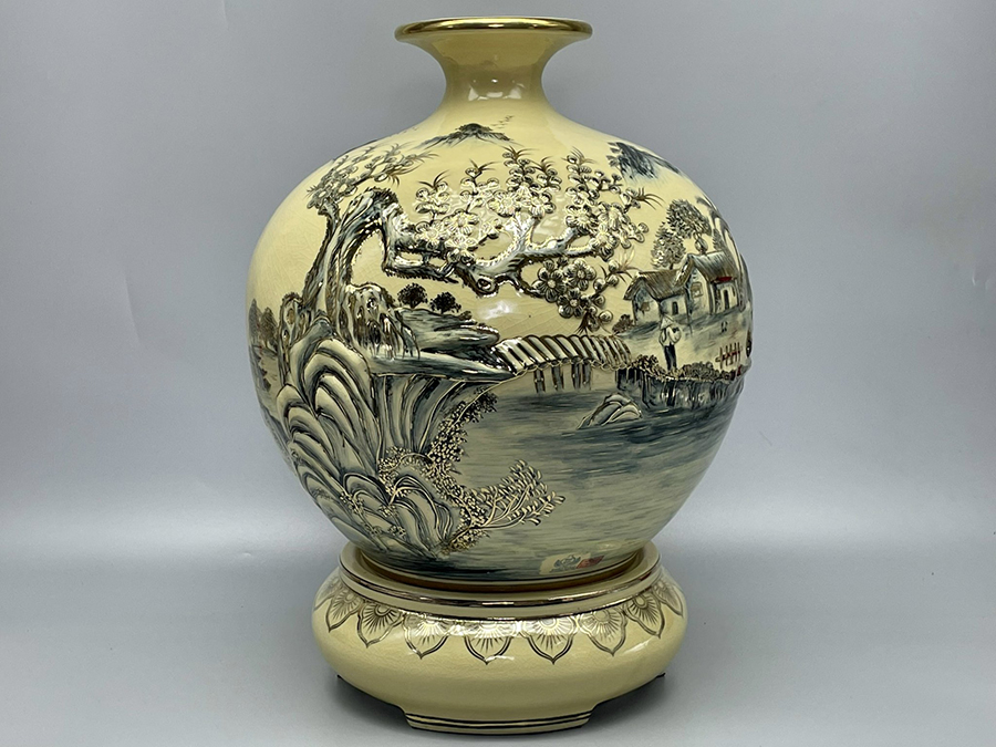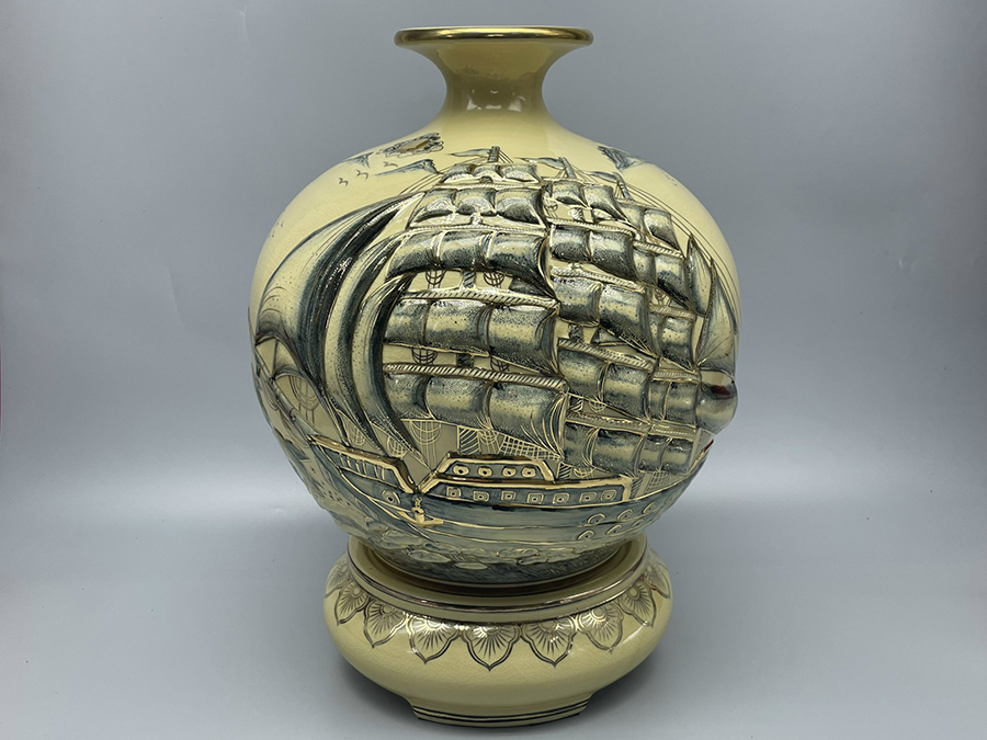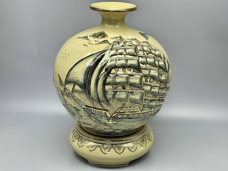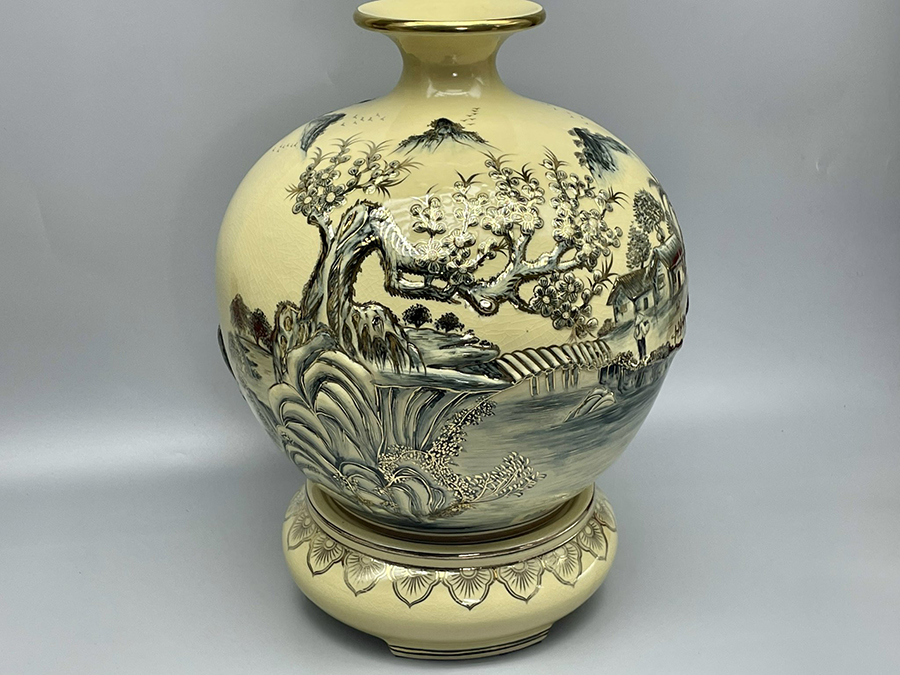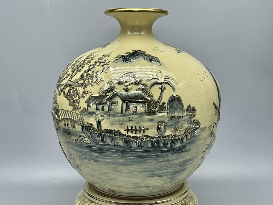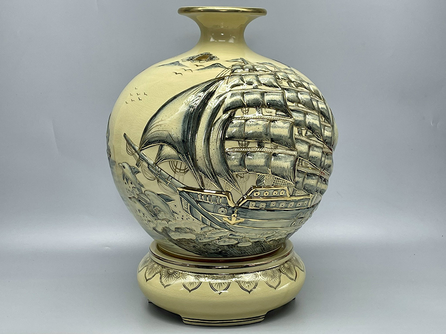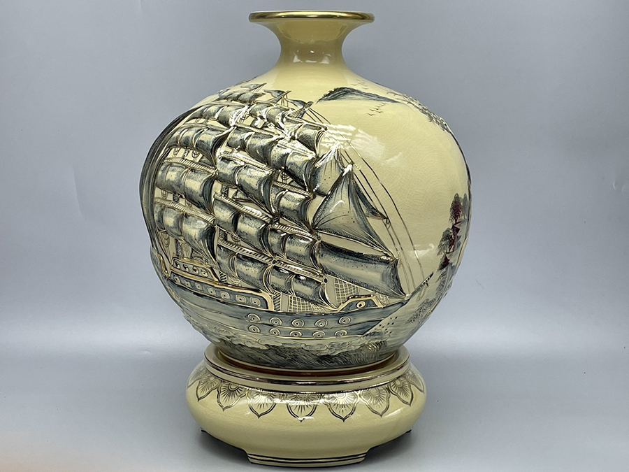 Bình Hút Lộc Thuận Buồm Xuôi Gió Đắp Nổi H45 Gốm Chu Đậu Vẽ Vàng Kim