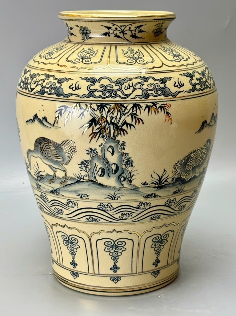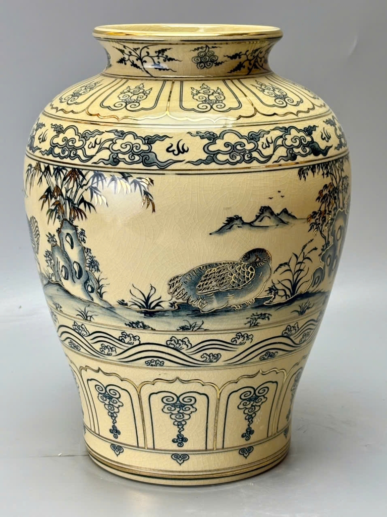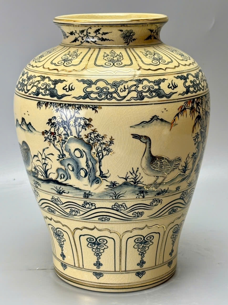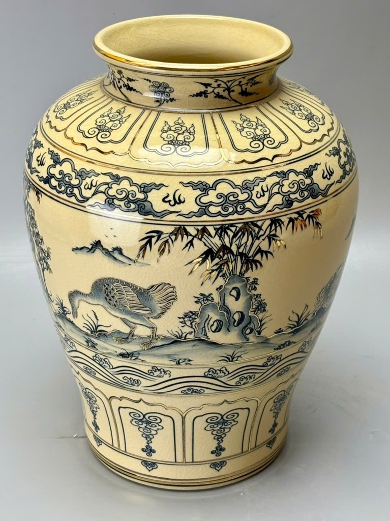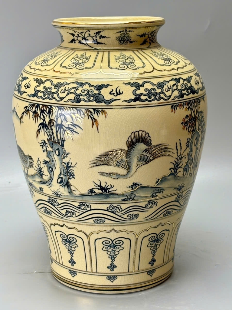 🦢 Bình Thiên Nga Cao 33cm – Gốm Chu Đậu Kẻ Vàng 24K