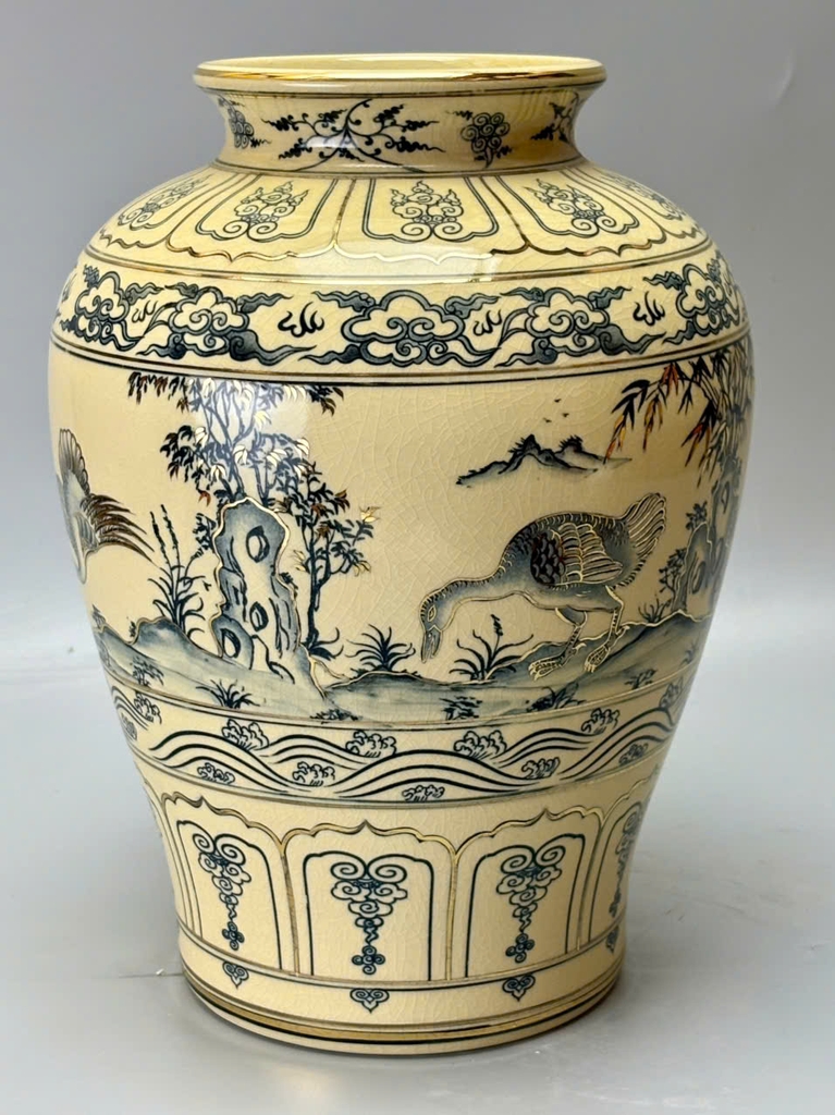- Họa tiết: Kẻ vàng 24K tinh tế, tôn lên đường nét mềm mại của bình