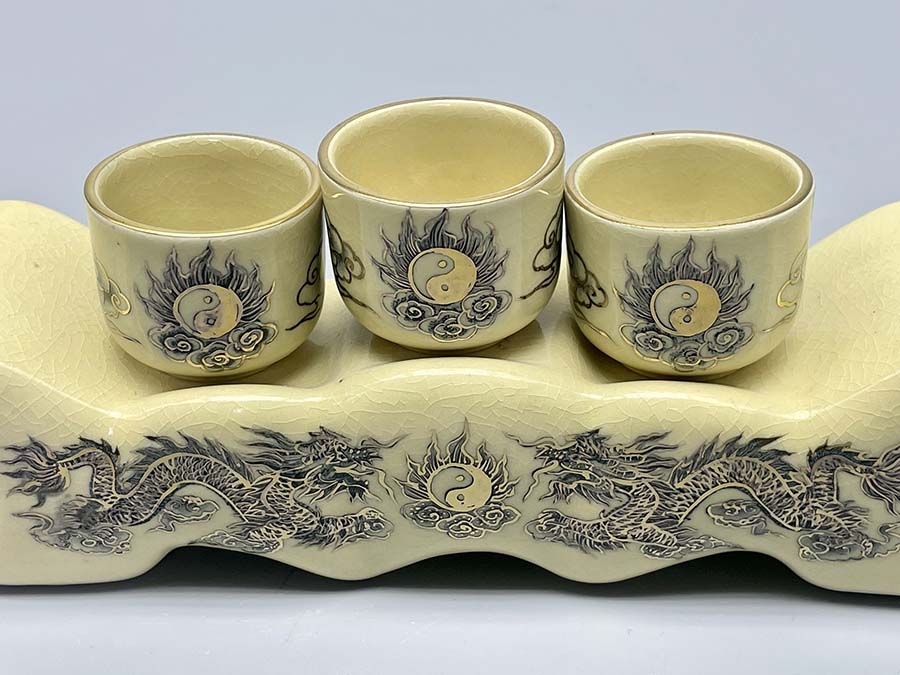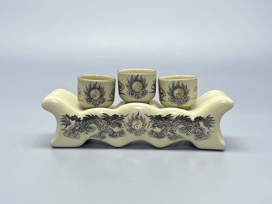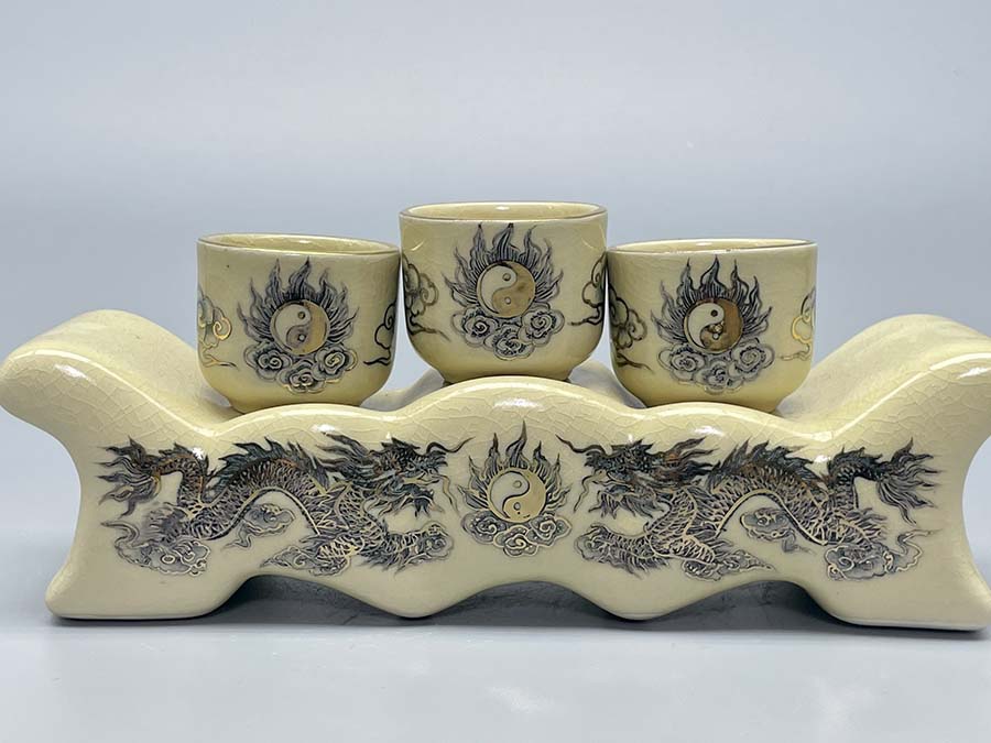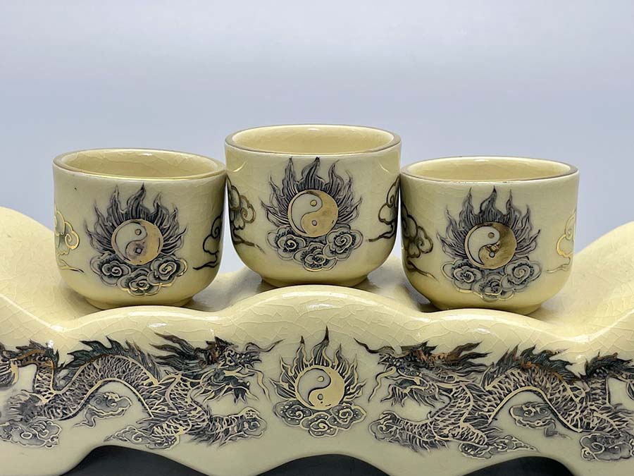 - Chất liệu: Gốm men rạn vẽ vàng kim