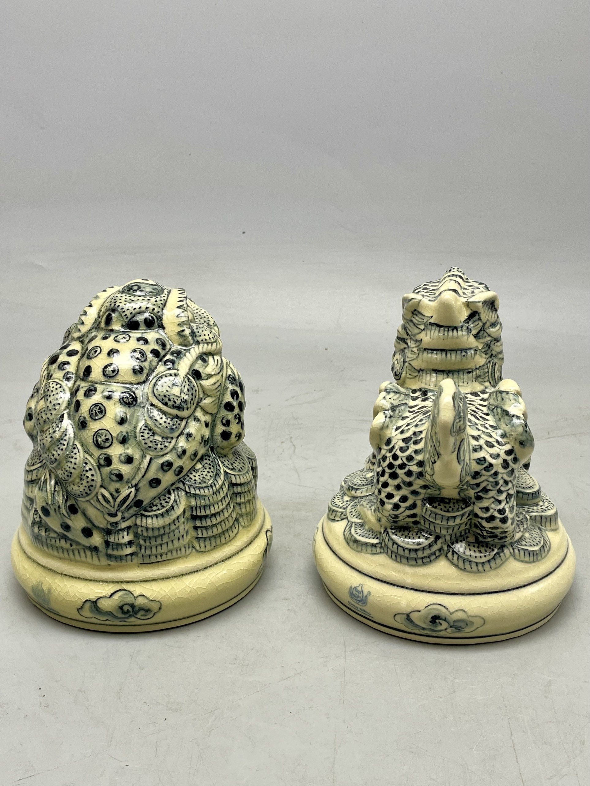 Cặp cóc tài lộc và lân tài lộc được làm thủ công từ chất liệu gốm cao cấp và được trang trí theo phong cách truyền thống của làng nghề Chu Đậu, nổi tiếng với các sản phẩm gốm sứ tinh xảo. Sự kết hợp giữa nghệ thuật truyền thống và ý nghĩa tâm linh của các biểu tượng này tạo nên những sản phẩm nghệ thuật độc đáo, thể hiện sự tinh tế và đẳng cấp trong nghệ thuật gốm sứ của Việt Nam.