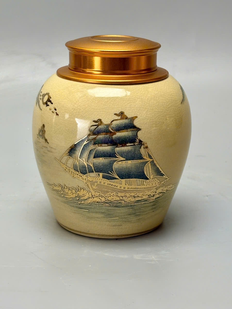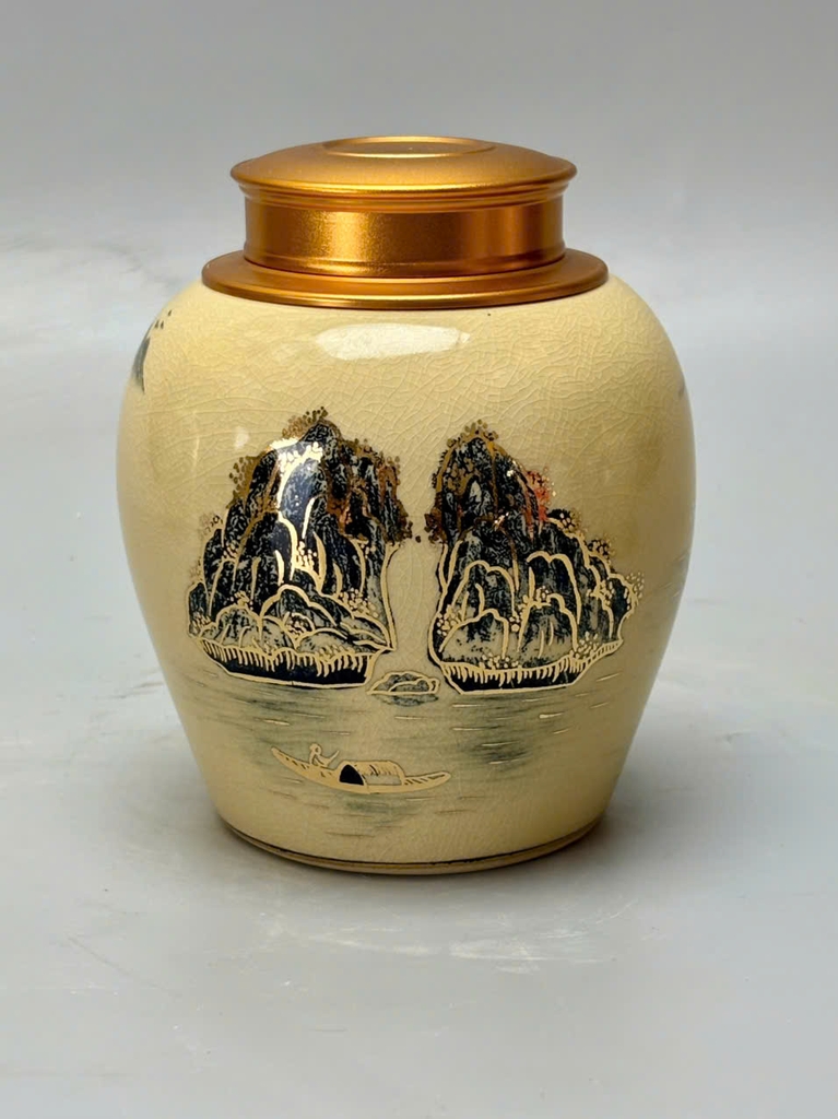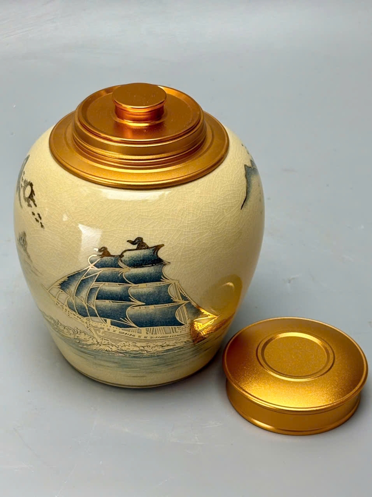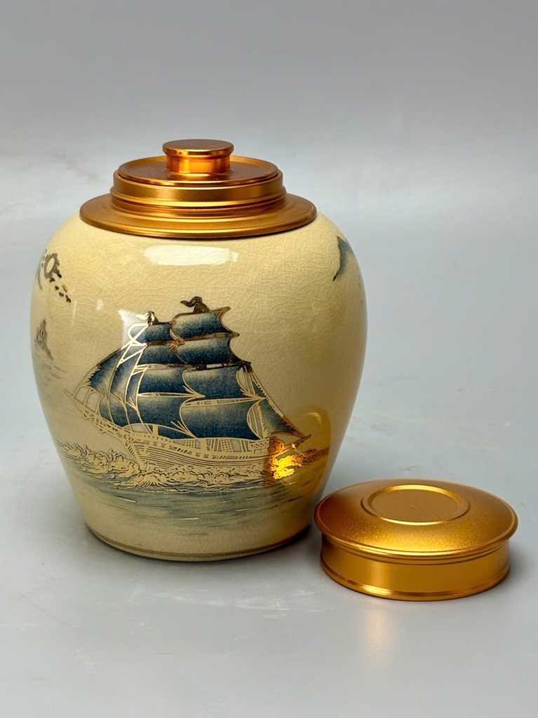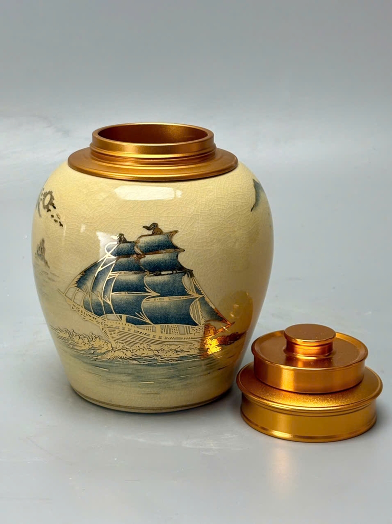 Hộp Đựng Trà Thuận Buồm Xuôi Gió H13 Gốm Chu Đậu Vẽ Vàng