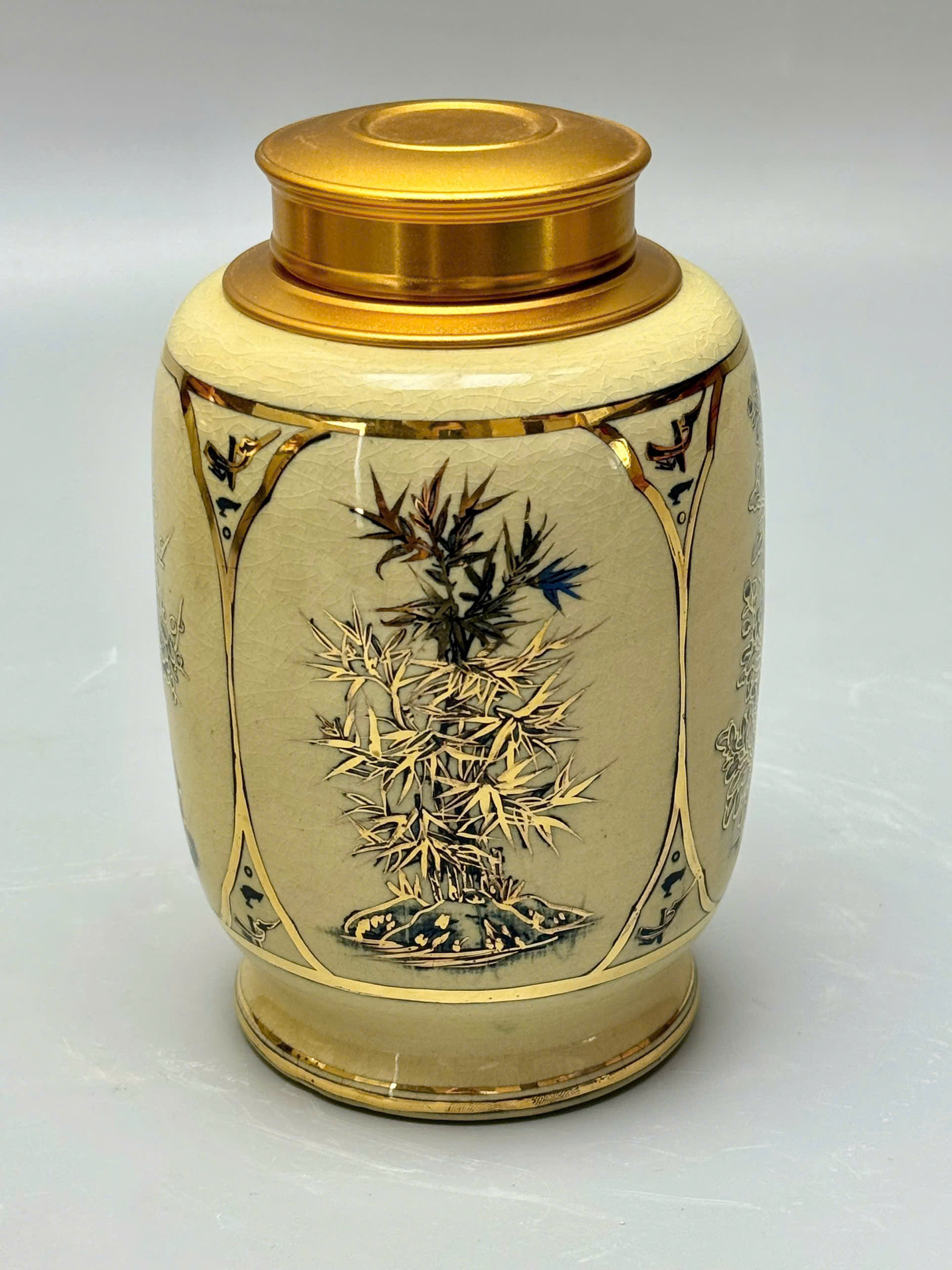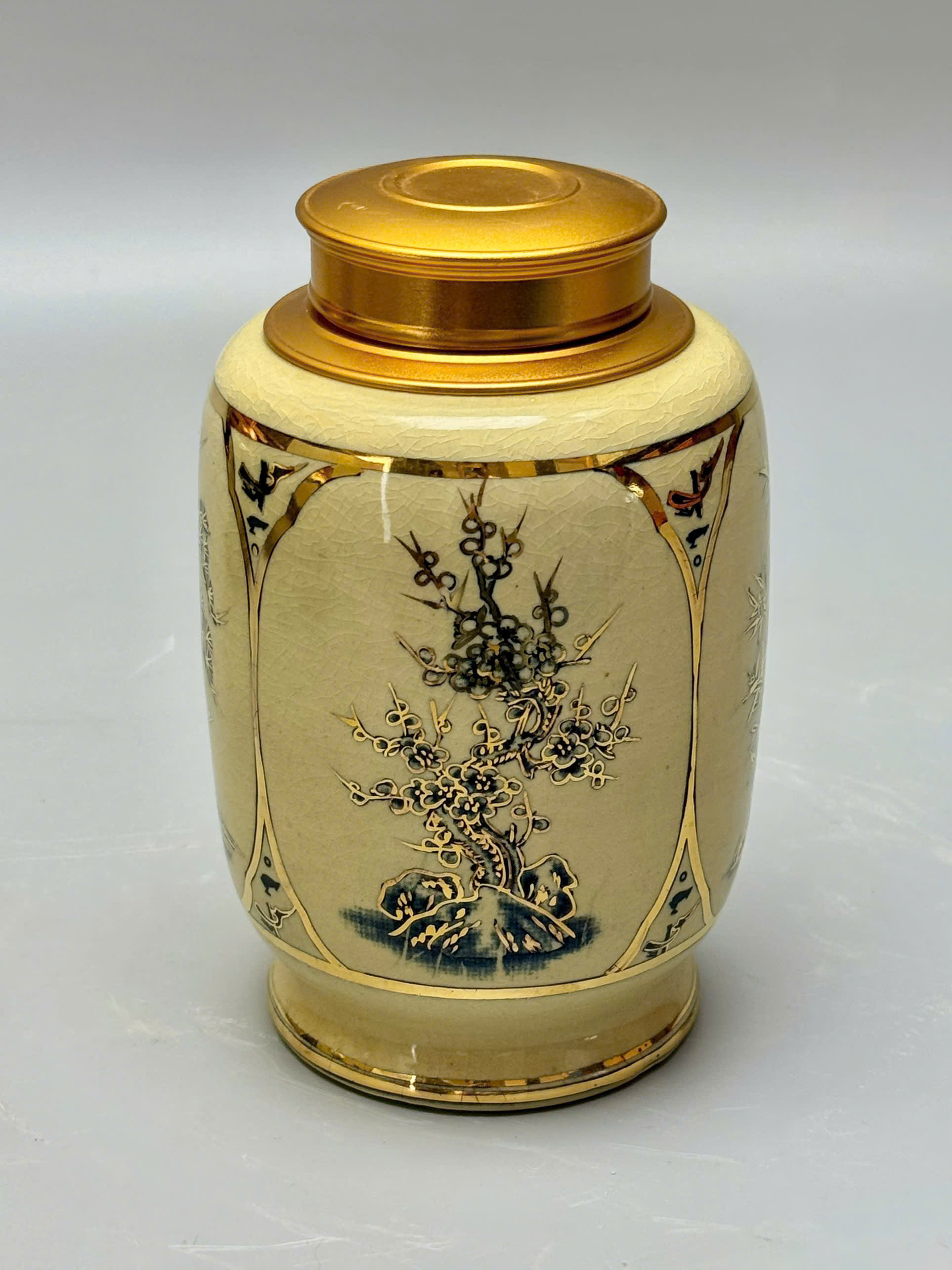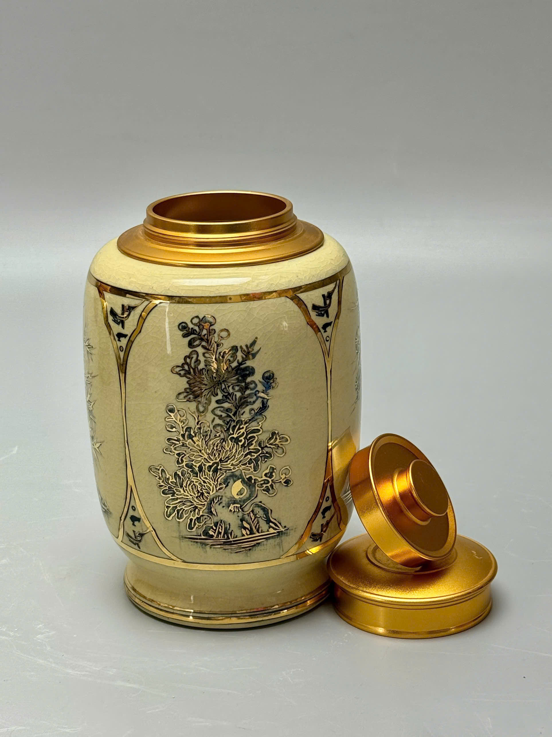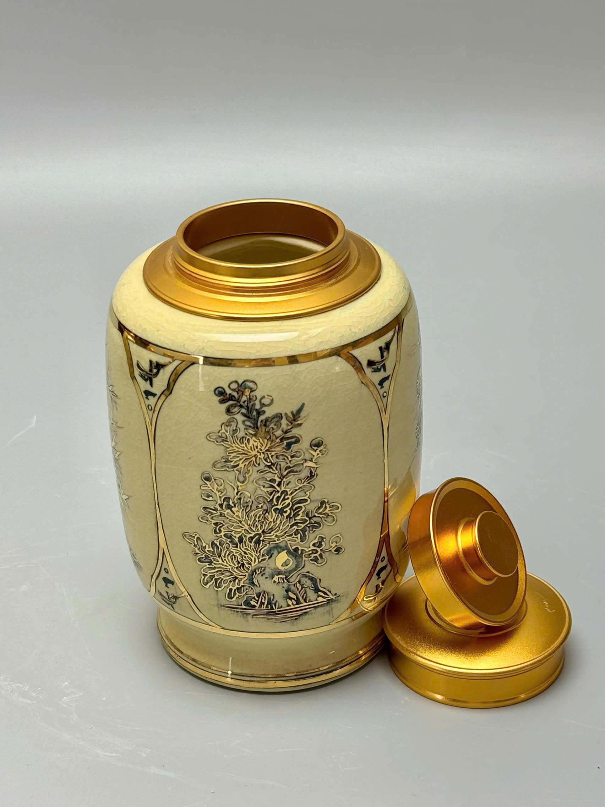 🏺 Hộp Đựng Trà Tứ Cảnh Gốm Chu Đậu Vẽ Vàng 24K – Vẻ Đẹp Truyền Thống Gắn Liền Phong Thủy