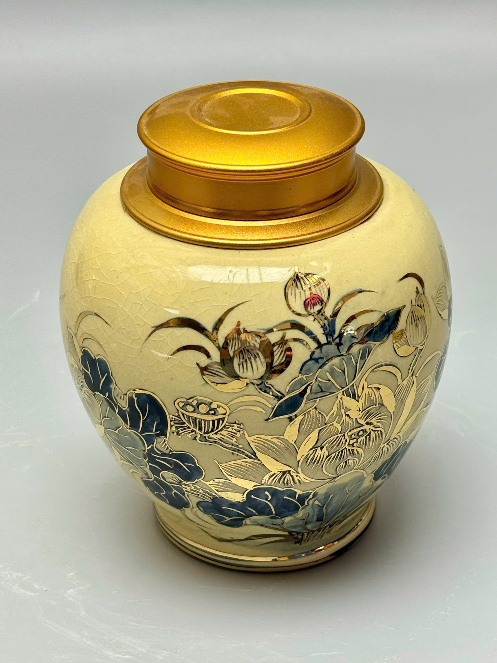 🏺 Hũ Đựng Trà Hoa Sen Gốm Chu Đậu Vẽ Vàng 24K – Tinh Hoa Nghệ Thuật Việt