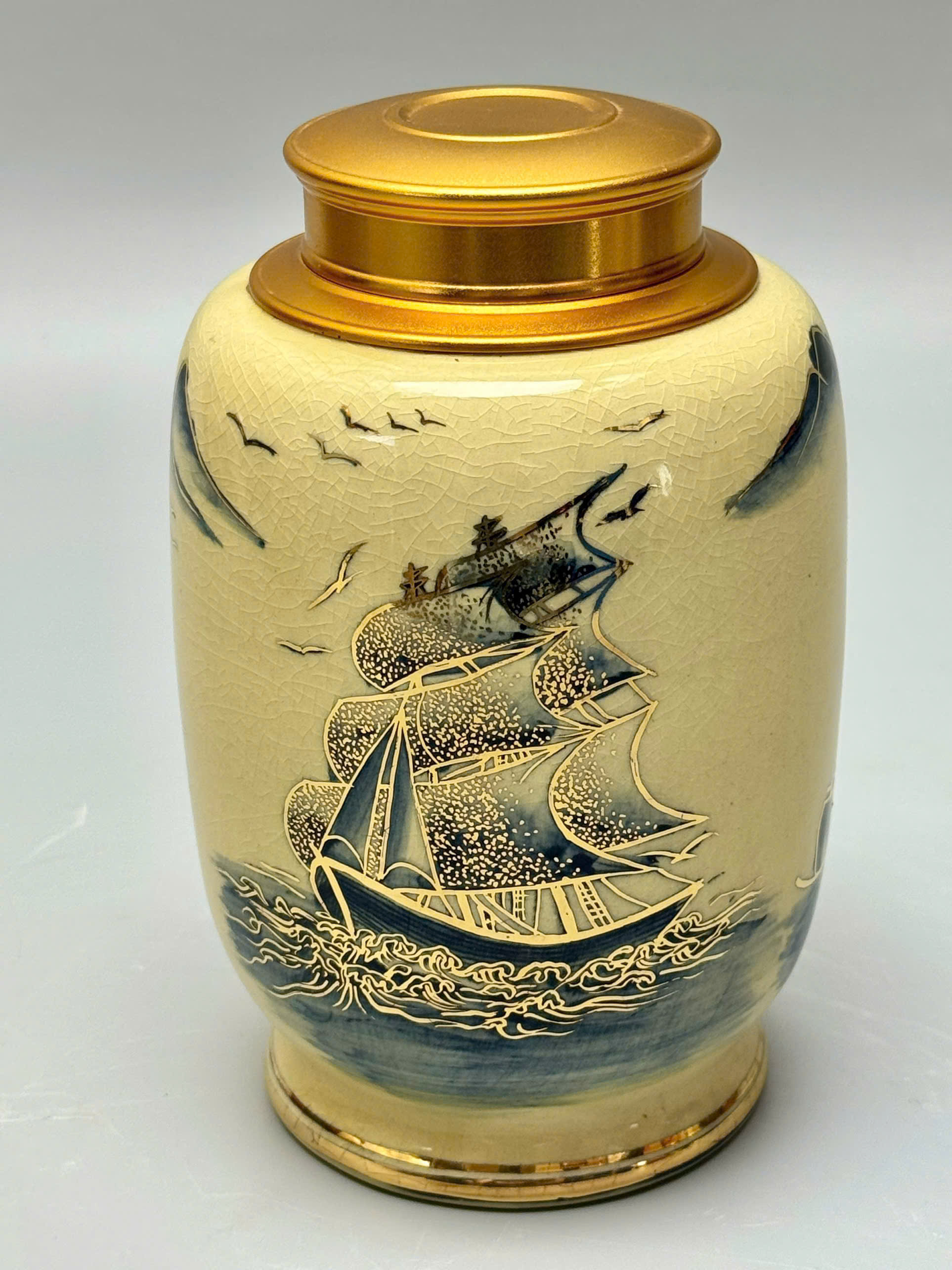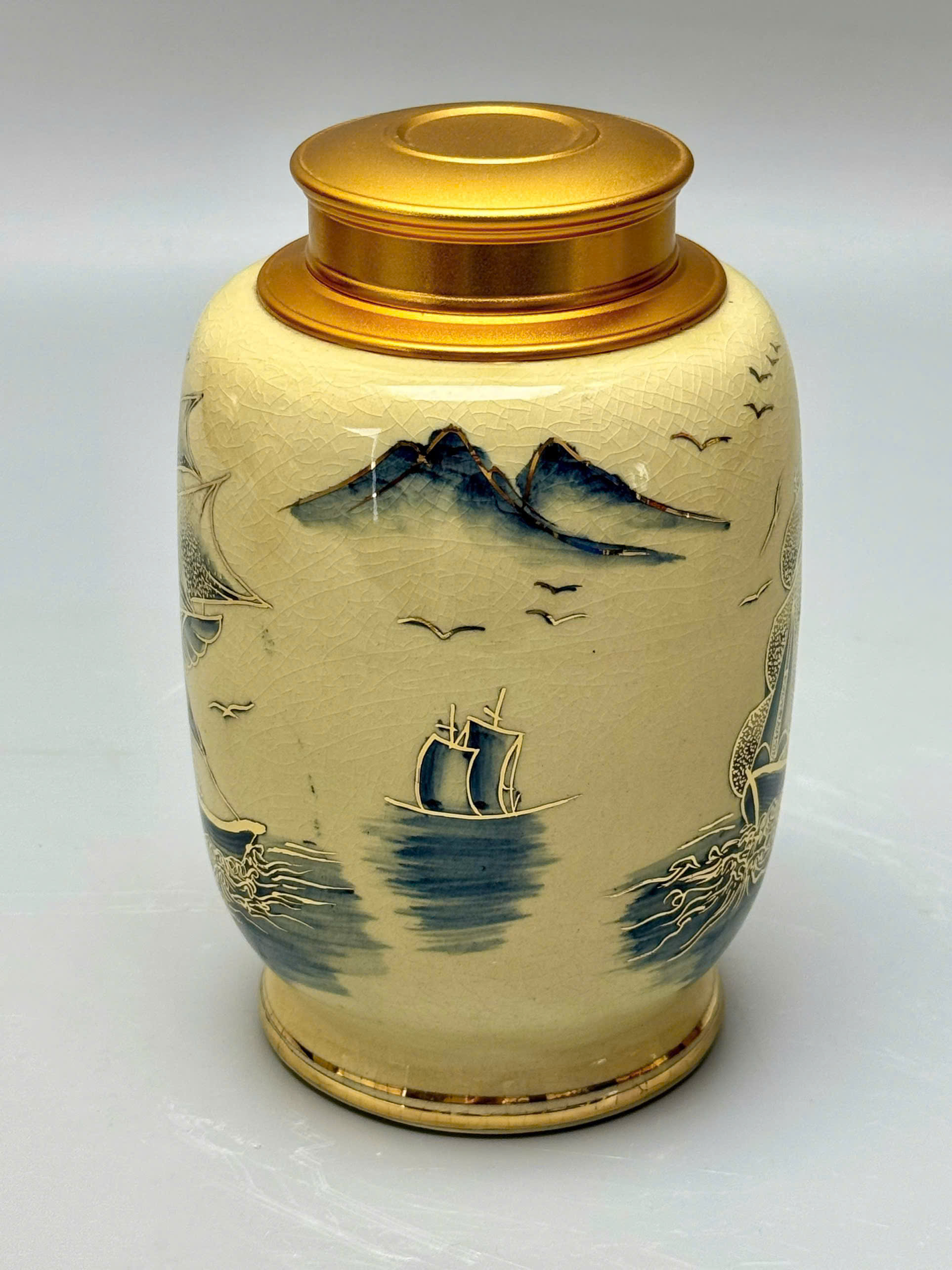 🏺 Hũ Đựng Trà Thuận Buồm Xuôi Gió Gốm Chu Đậu Vẽ Vàng 24K – Biểu Tượng May Mắn và Thành Công