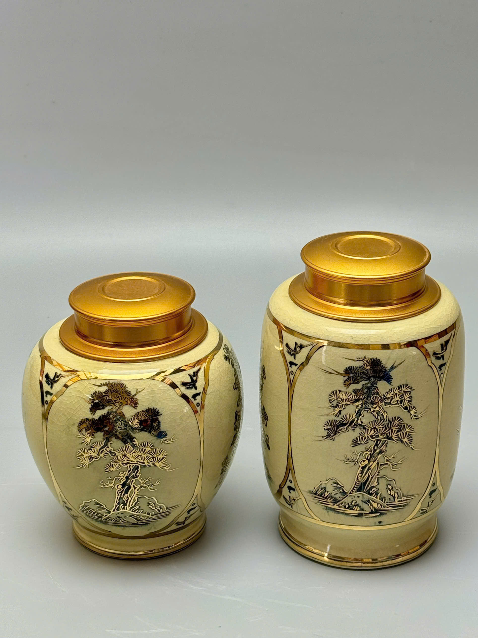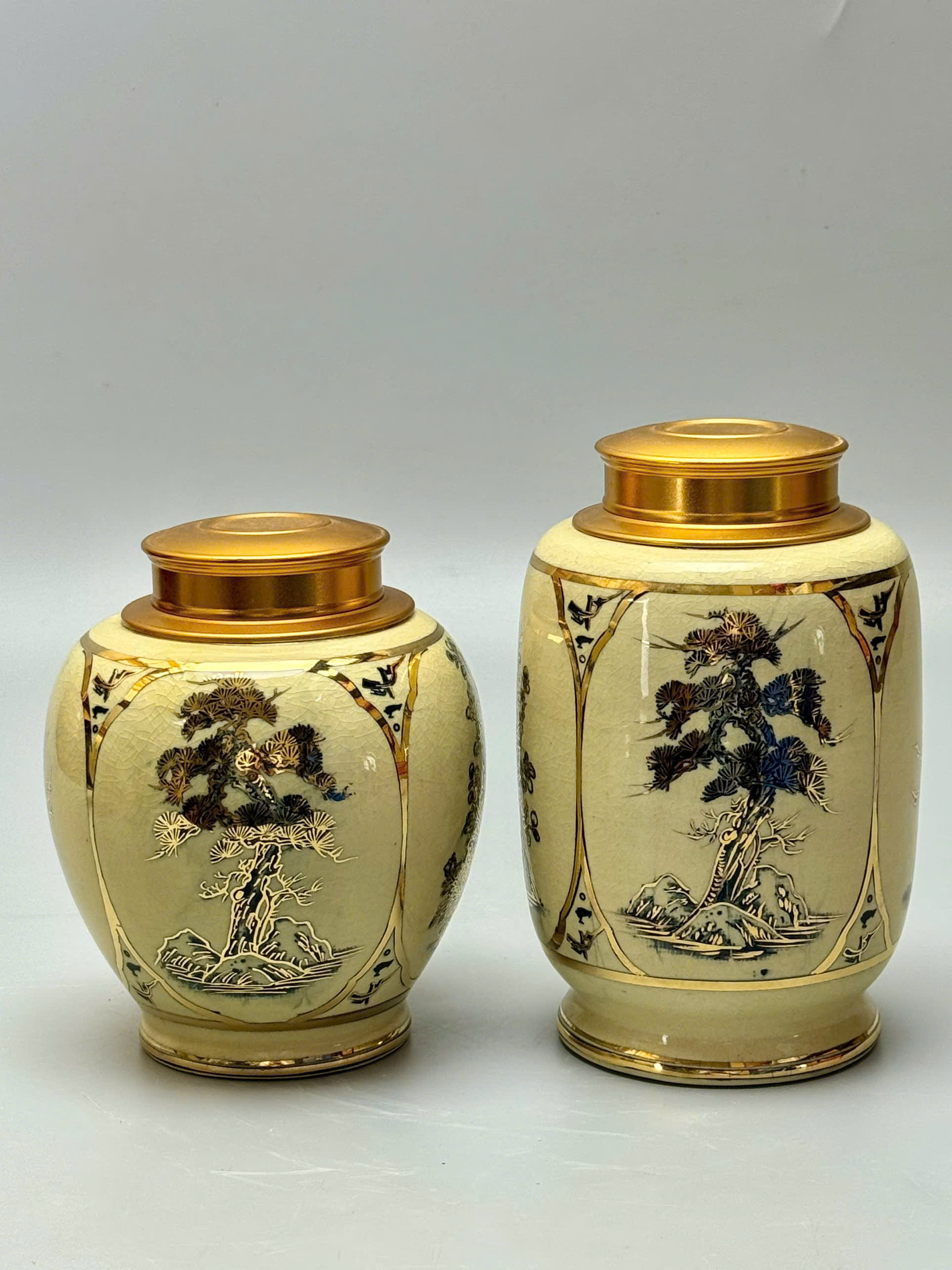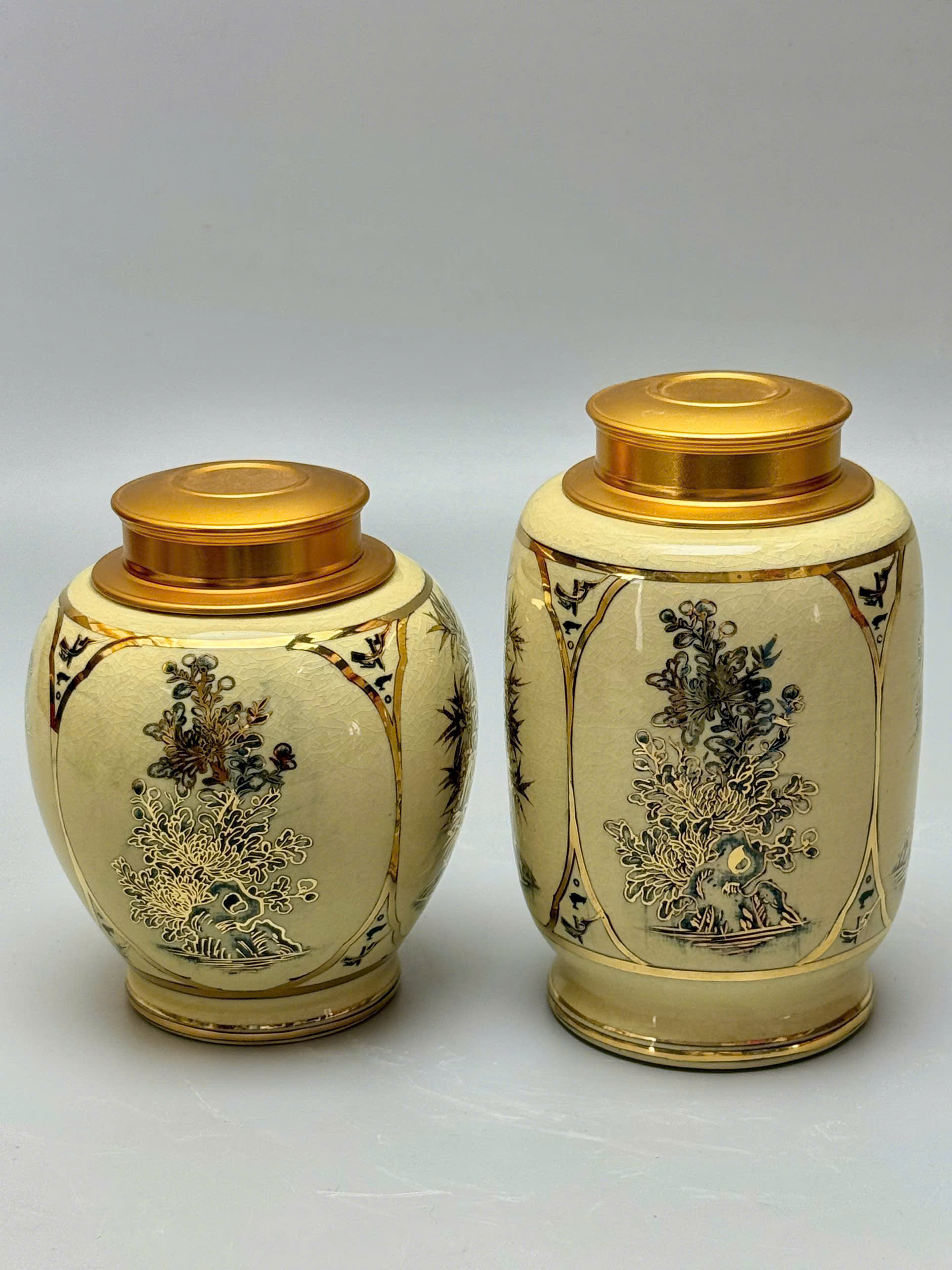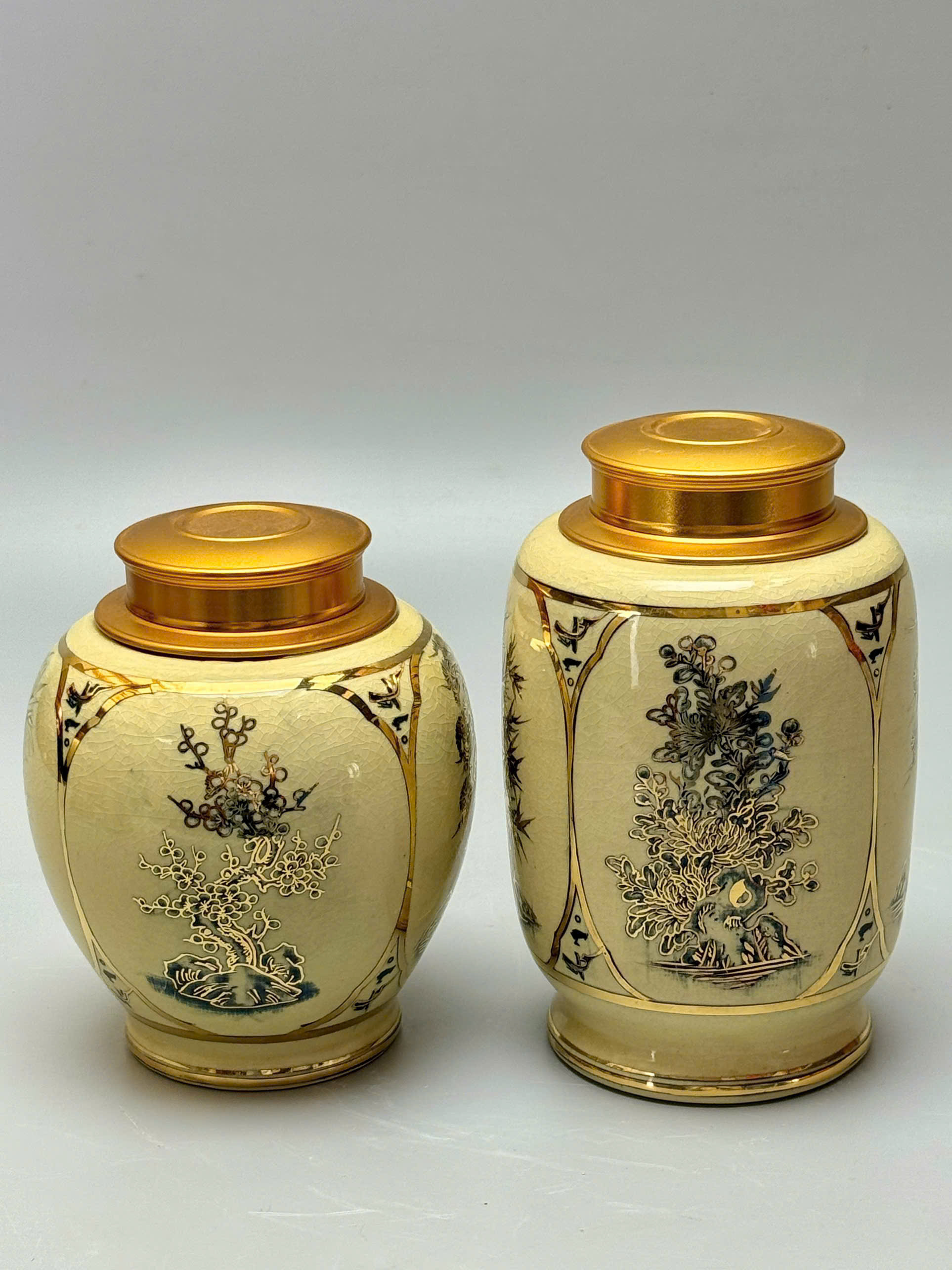 🏺 Hũ Đựng Trà Tứ Cảnh Gốm Chu Đậu Vẽ Vàng 24K – Vẻ Đẹp Trường Xuân Trong Từng Nét Gốm