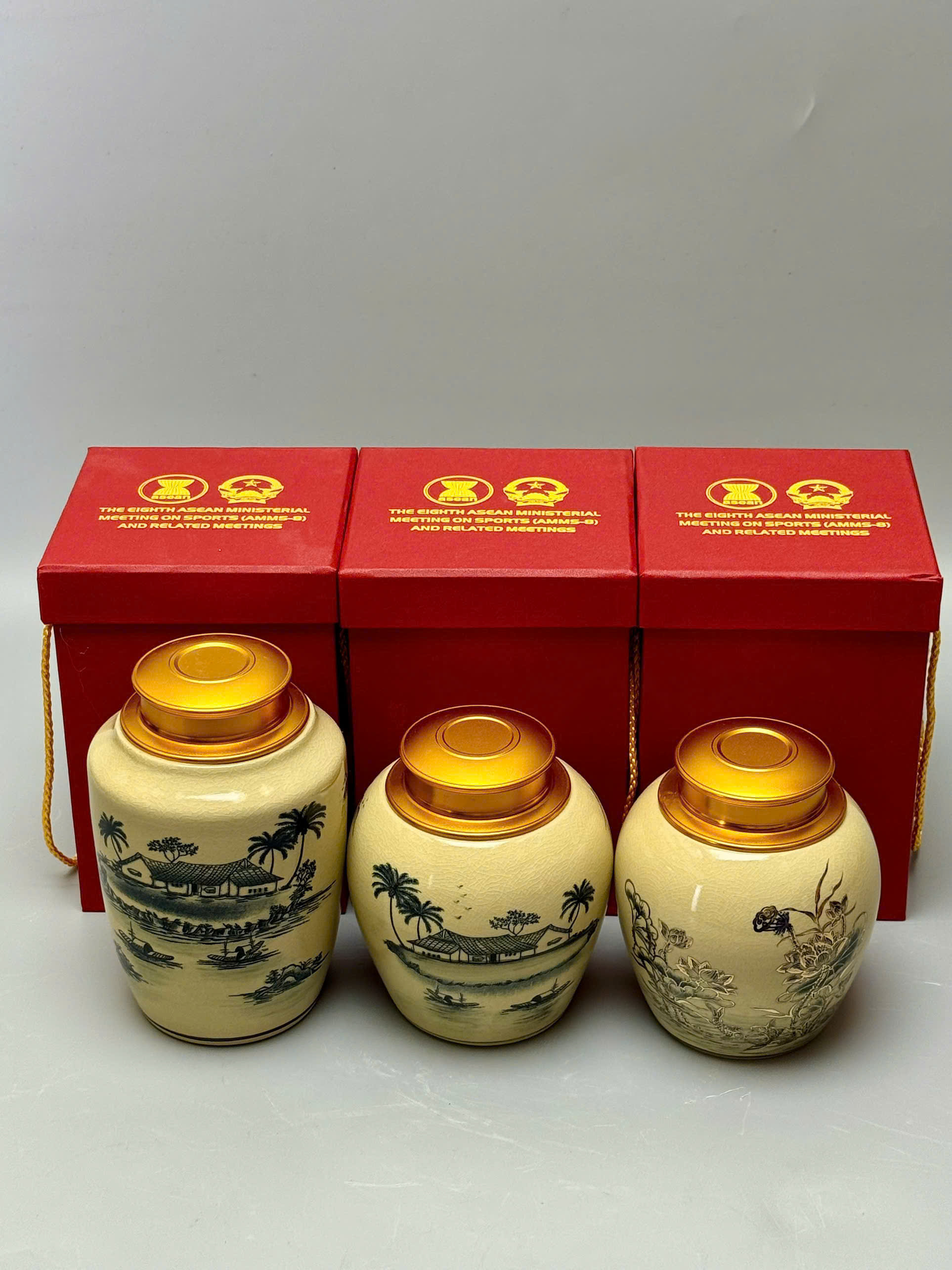 Hũ đựng trà gốm Chu Đậu – Quà tặng cao cấp cho đại hội thể thao ASEAN tại Việt Nam, tôn vinh văn hóa truyền thống và tinh thần thể thao khu vực.