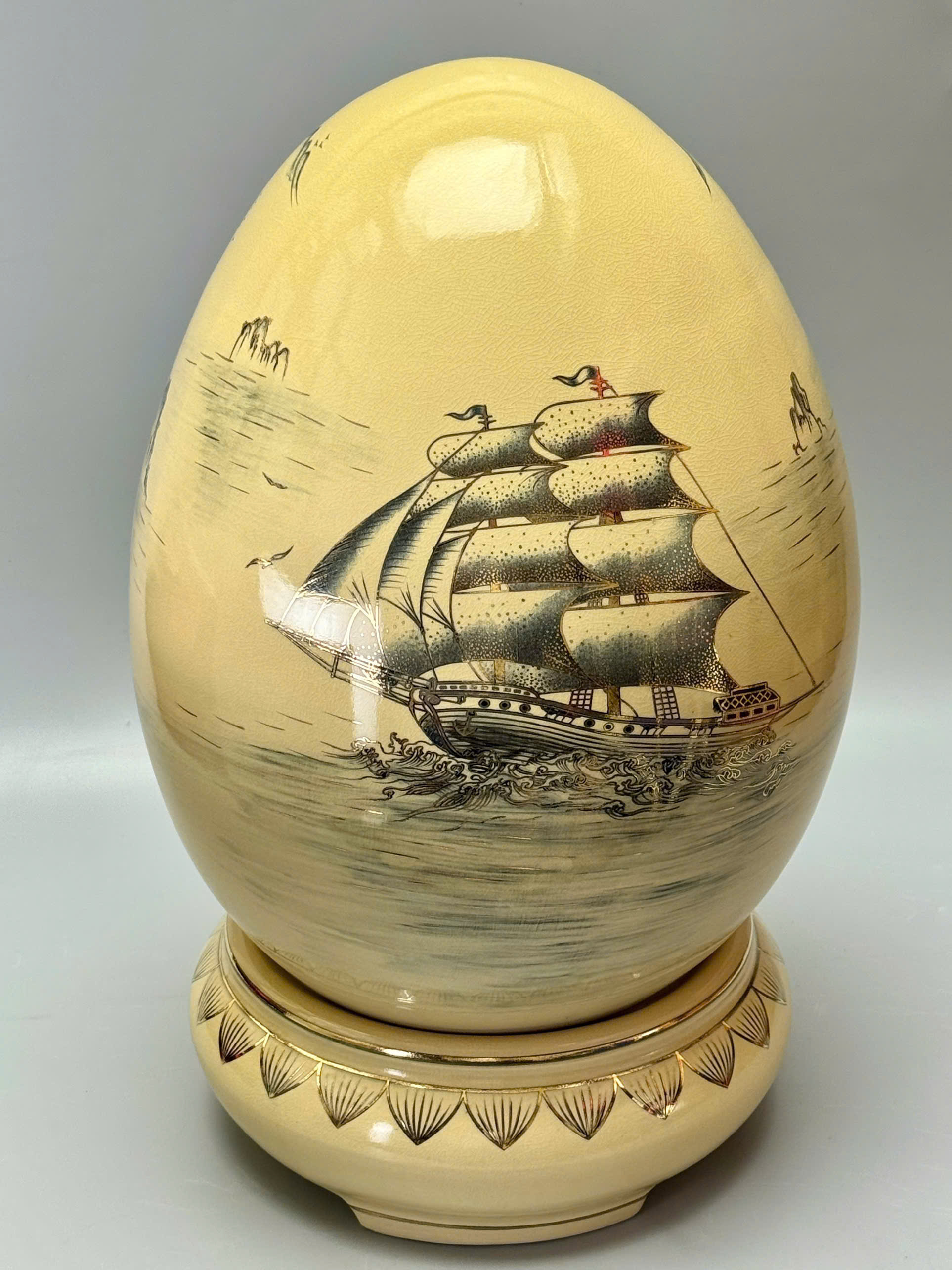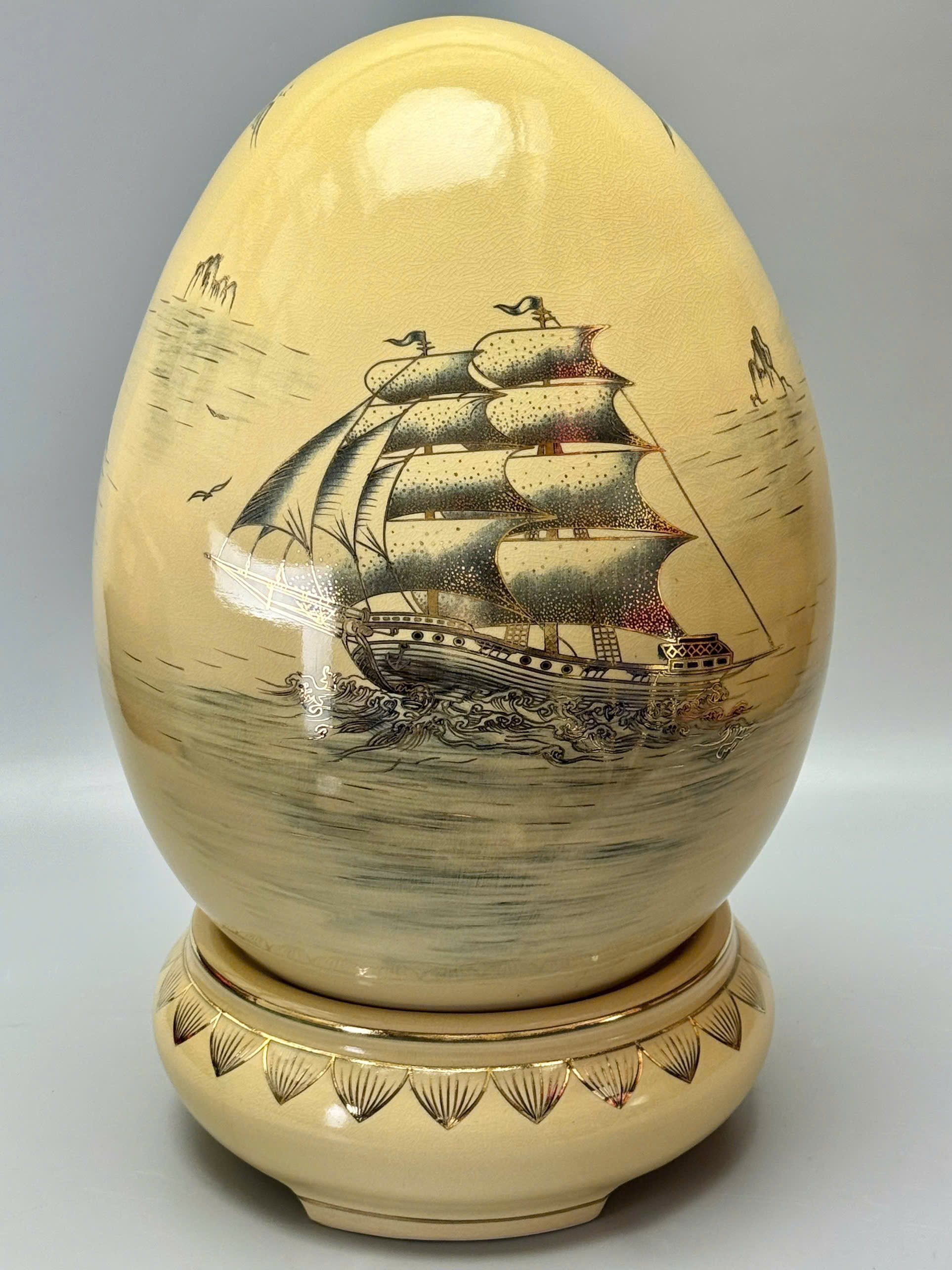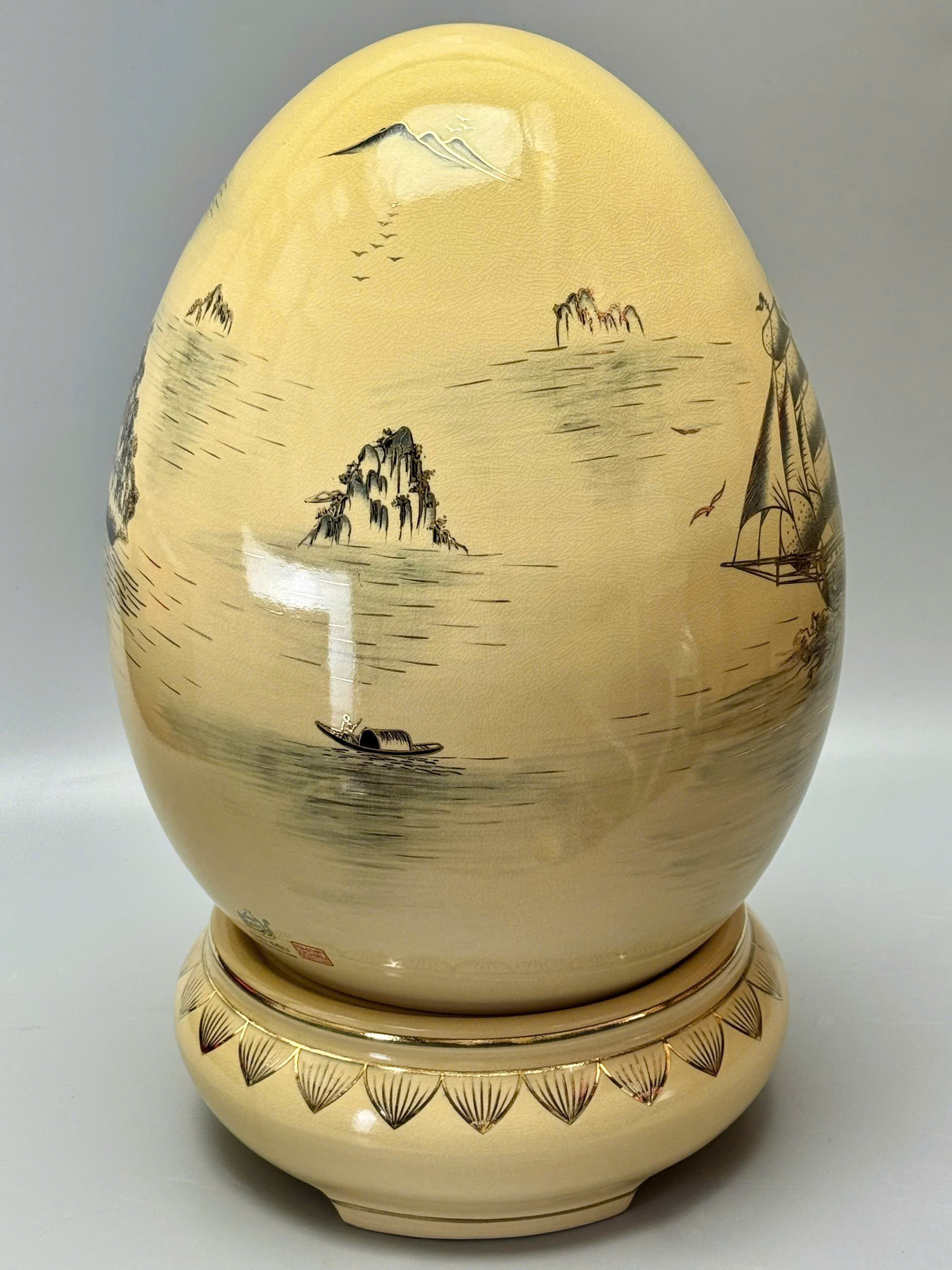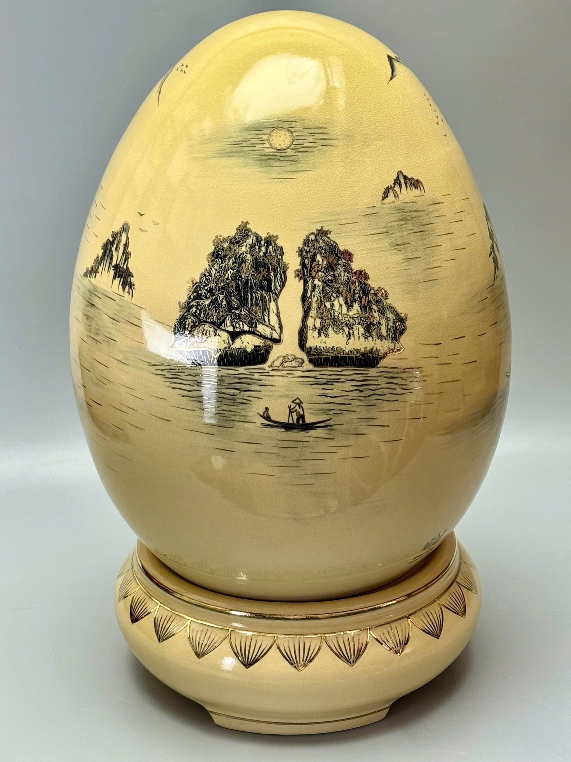 🥚 Trứng Tài Lộc Cao 55cm Gốm Chu Đậu Vẽ Vàng 24K